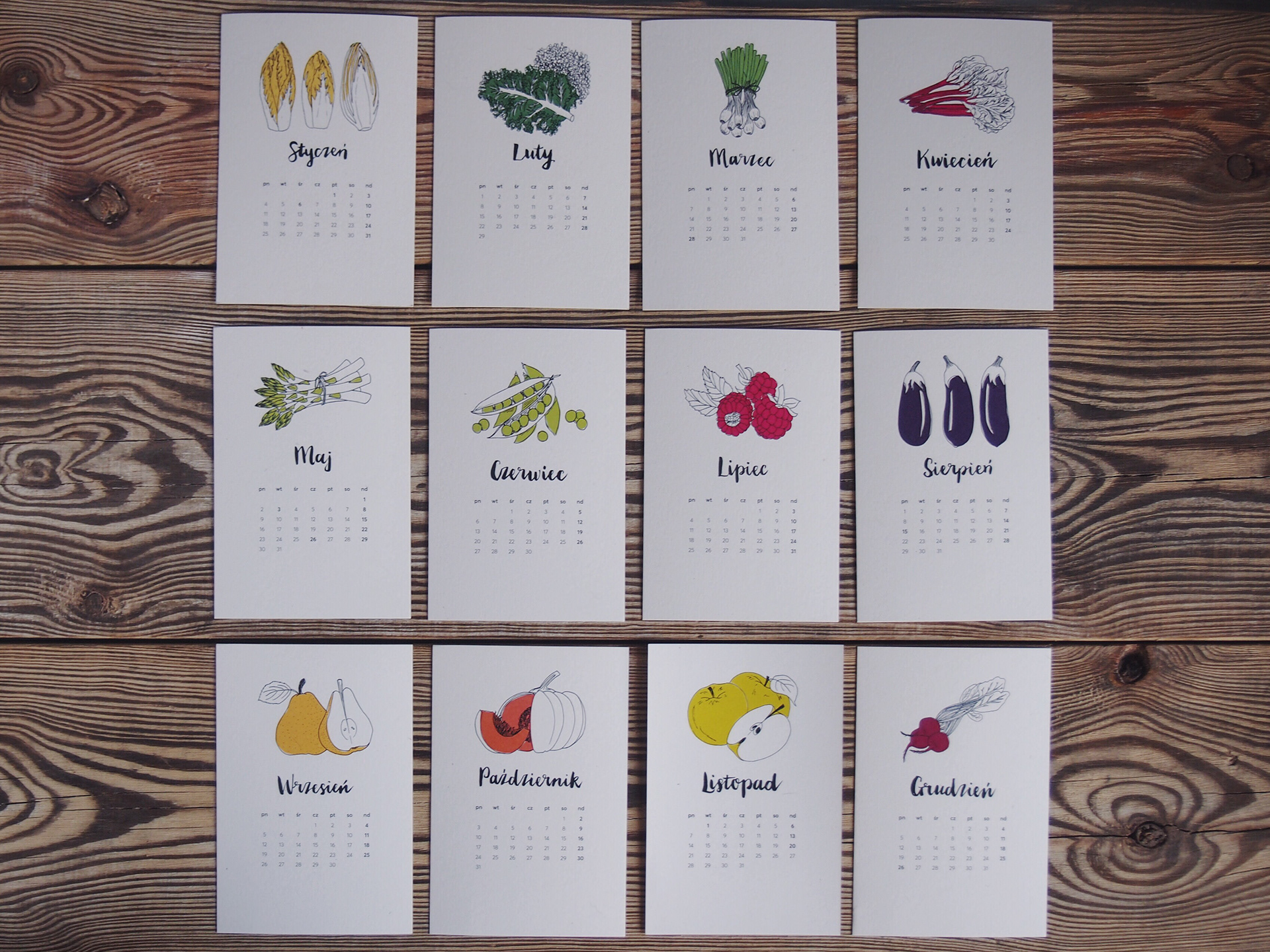 Calendar for 2016 with culinary recipes. Distributed by friends and independent bookstores like Cookoff by bookoff in Warsaw, Bardzo Rozsadnie in Lodz and others. Colaborated with food blogger Karolina Piwowar from vegeaddicted.pl, who created recipes for wegetarian and seasonal dishes.